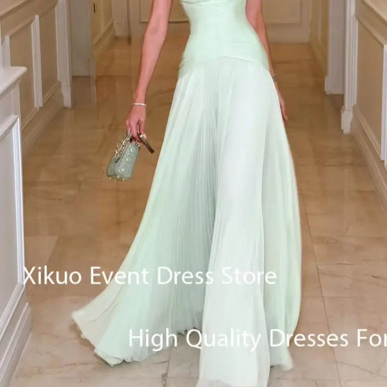 Xikuo Элегантные мятно-зеленые шифоновые вечерние платья Длинные трапециевидные платья с лямкой на шее Коктейльные женские плиссированные платья для выпускного вечера по индивидуальному заказу