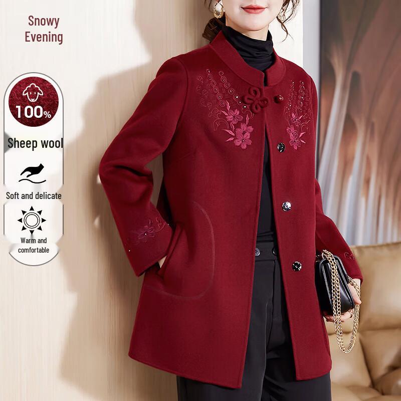 Xuexi Женское вышитое двустороннее шерстяное кашемировое зимнее пальто 4XL