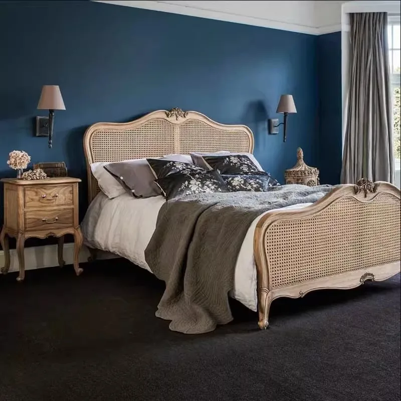Y деревянная резная плетеная ротанговая двуспальная кровать в американском стиле с высокой спинкой, спальня из цельного дерева, ностальгическая художественная кровать из ротанга в стиле ретро, кровать 1,8 м