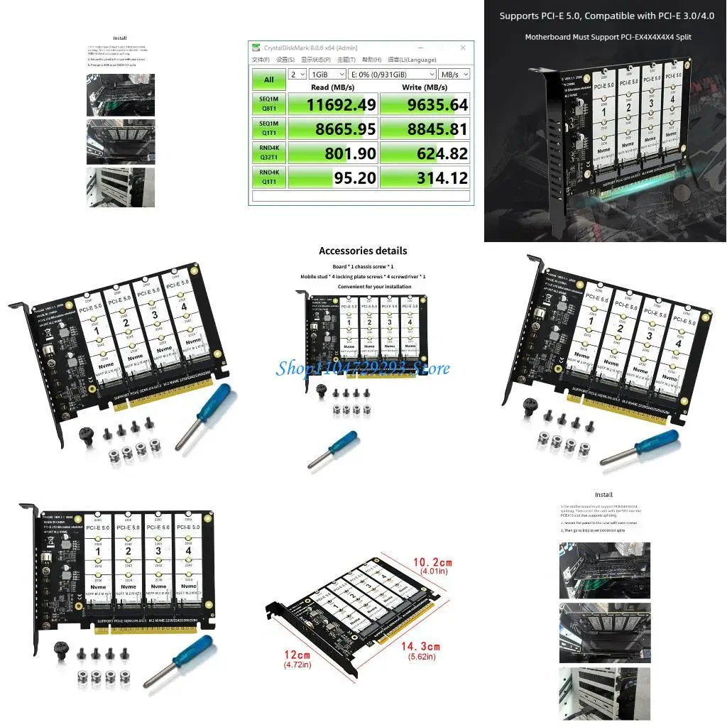 Y2GD Professional PCIe Expansion Card for 4 M.2 NVMe SSDs PCIe x16 LED Indicators No Blocking