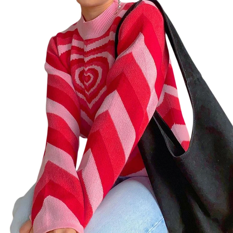 Y2K вязаный свитер, эстетичные пуловеры в полоску с сердечками, свитер для девочек, милая Водолазка с длинным рукавом, осенняя уличная одежда