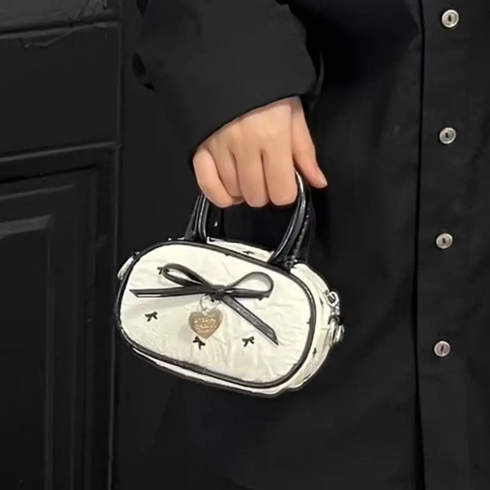 Y2K сумка через плечо с бантом в горошек, уличный стиль, большая вместительная мини-сумка с ручкой сверху, сумка для покупок с подвеской в виде любви, винтажная сумка