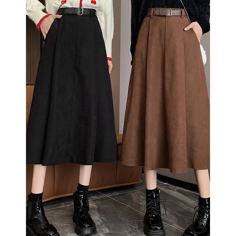 Y2kоднотонная Женская винтажная длинная бархатная плиссированная юбка, Женская осенне-зимняя Элегантная модная женская трапециевидная юбк...
