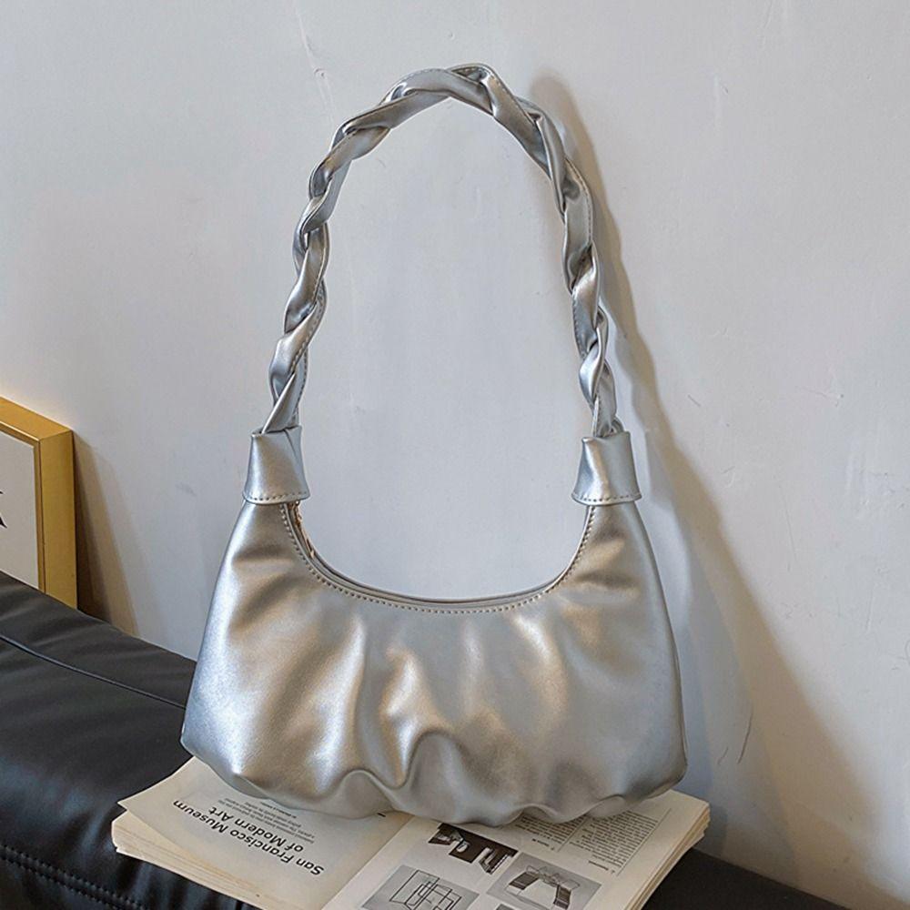 Y2k Серебряная сумка-хобо-тоут из искусственной кожи, кошелек-клатч, модная сумка на одно плечо для девочек