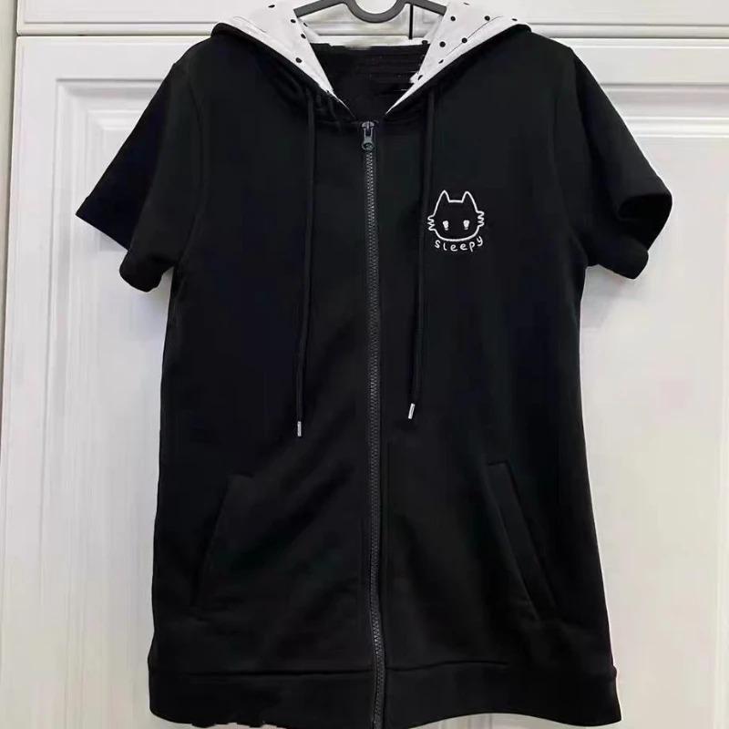 Y2k Kawaii милые футболки женские в японском стиле Харадзюку в стиле пэчворк свободные футболки с принтом кота мягкие топы для девочек лето 2024 XXL чёрный