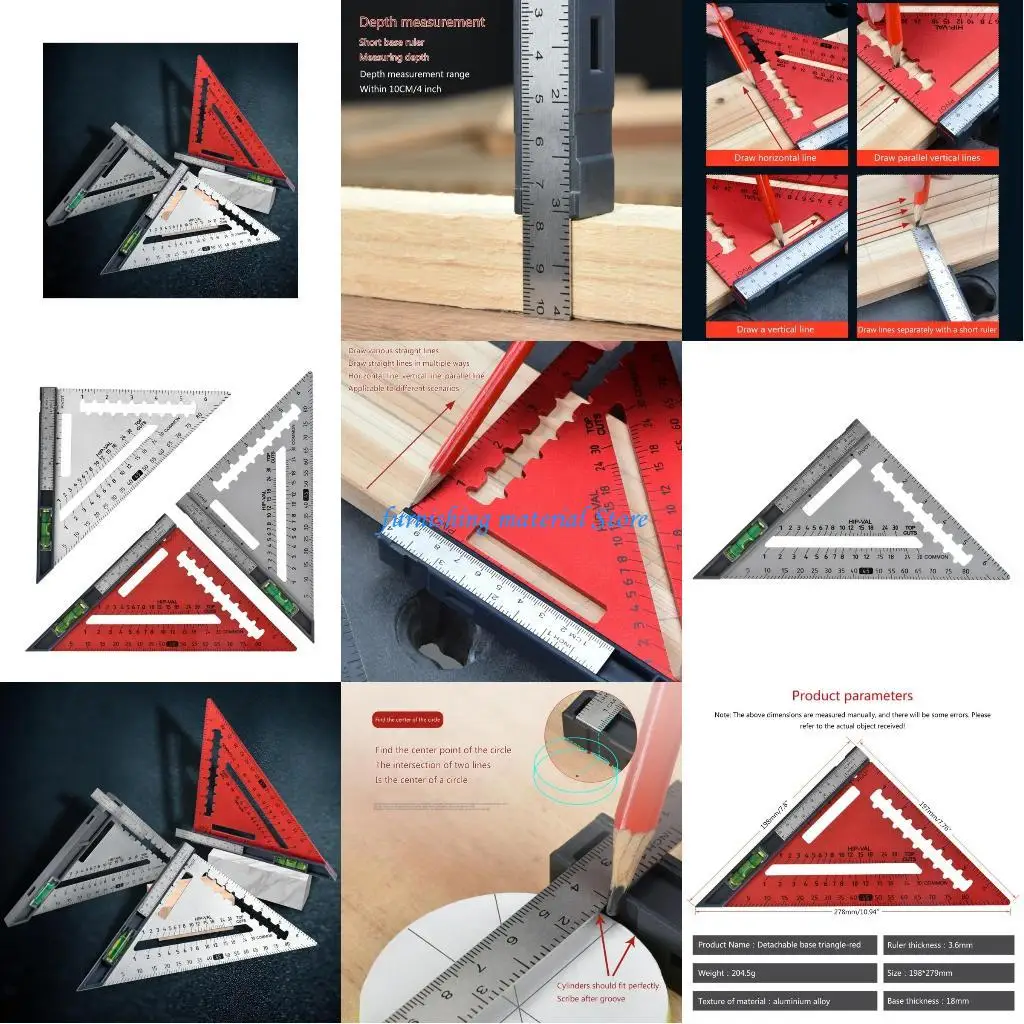 Y5GD Triangle Ruler Aluminum Alloy Ruler for Carpenter Workshop Woodworking