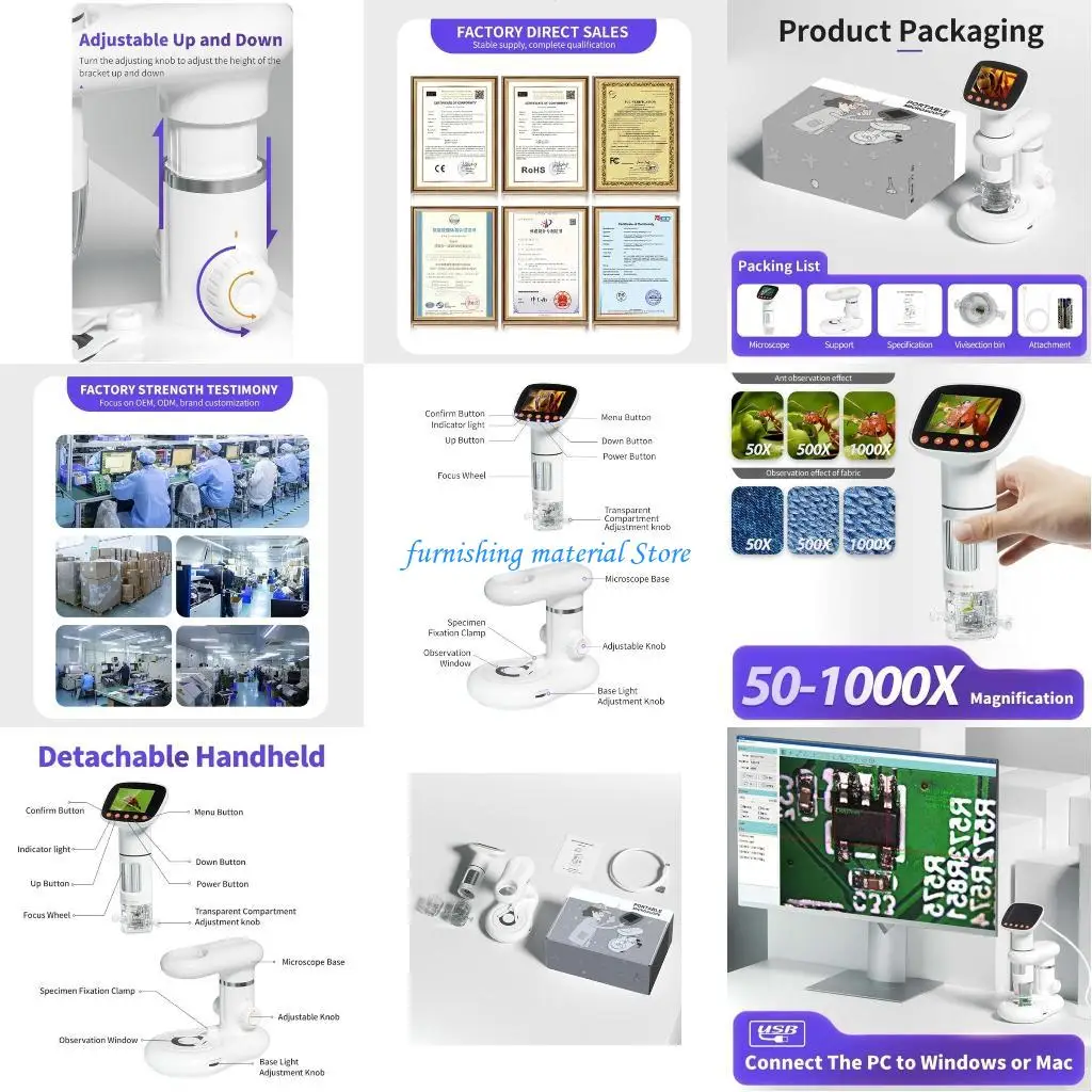 Y5GD Wireless Digital Microscope 50X-1000X Magnification Portable Handhelds USB Microscopes with Flexible Stand for Kid Adult
