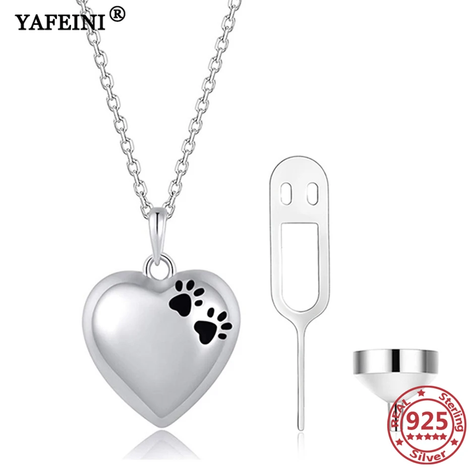 YAFEINI 925 пробы Серебряное ожерелье в форме лапы и урны в форме сердца для пепла мемориальная урна ожерелье с кулоном памятный сувенир ювелирн...