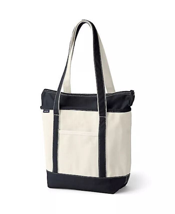 Сумка-тоут среднего размера из парусины с карманами на молнии и длинной ручкой Lands' End, белый