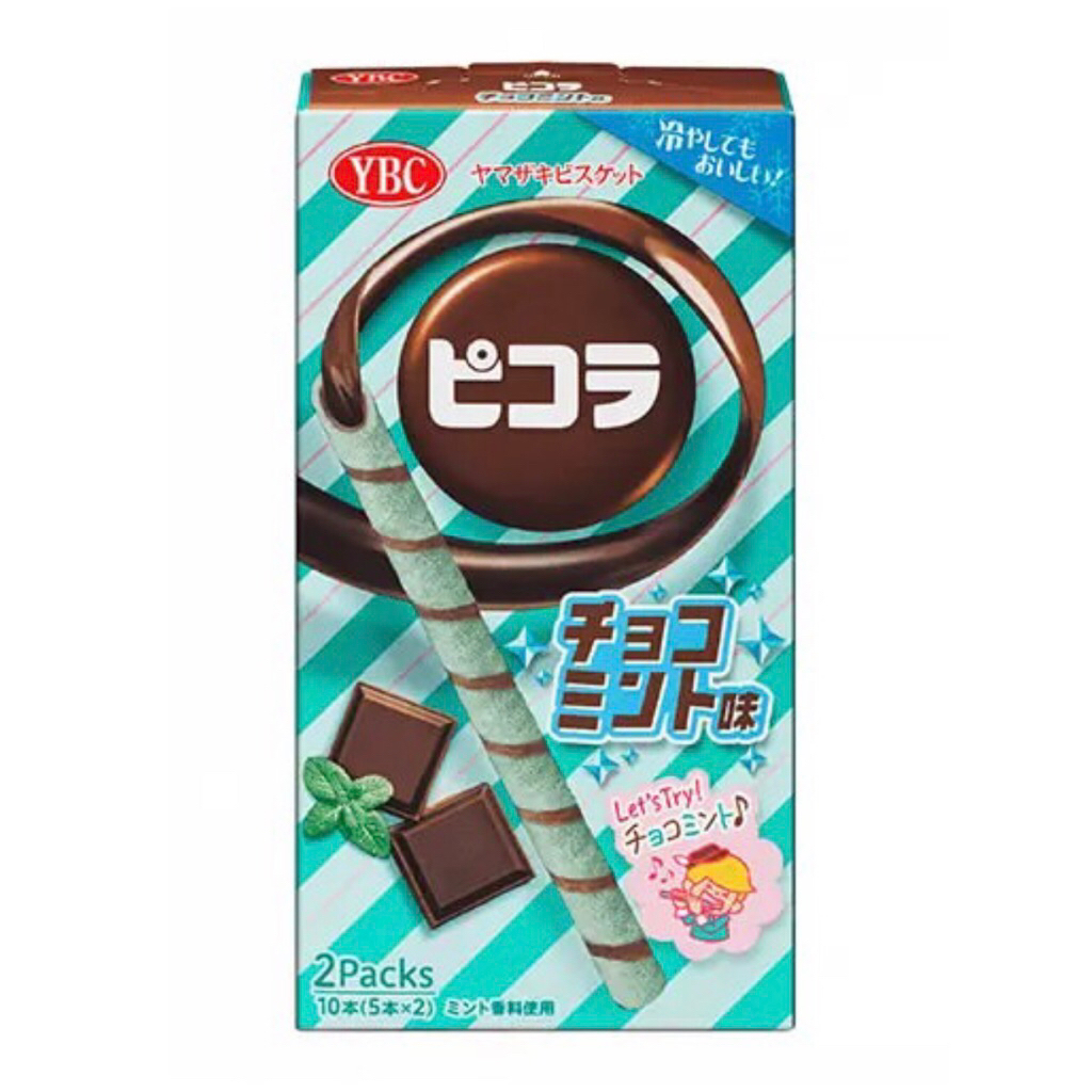 YBC Picola Chocolate Mint flavored roll cookies, which are crispy wafer rolls with a creamy filling.