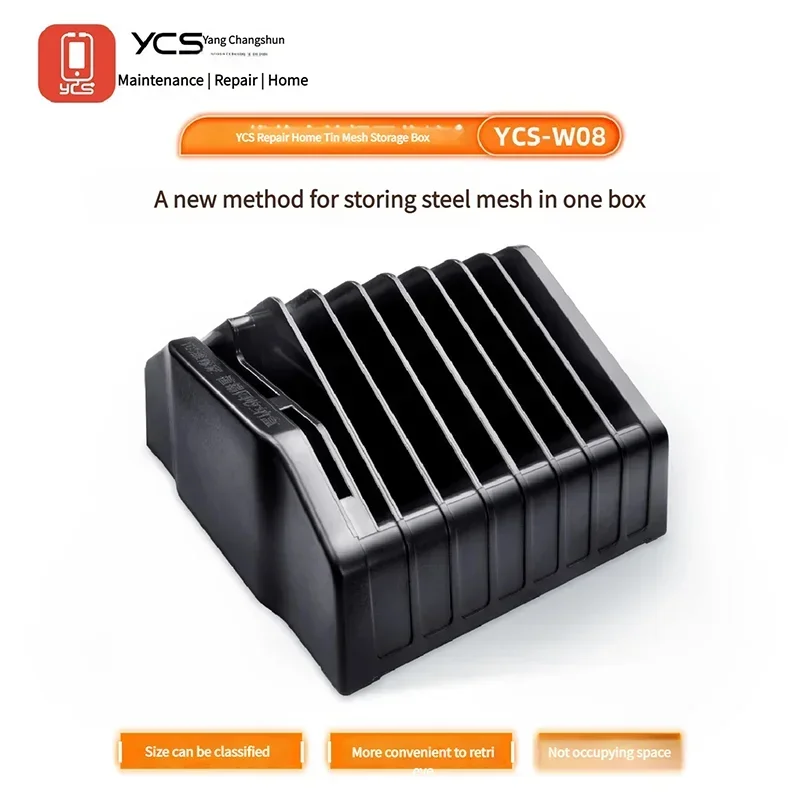 YCS YCS-W08 Stencil Storage Box for Mobile Phone Motherboard Chip Rework Convenient Fast Access Tin Mesh Plastic Storage Box