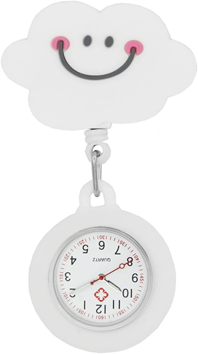 YFFSFDC Милые карманные часы с клипсой для медсестер и медицинского персонала, часы с облачком на циферблате, часы, читать, унисекс, выдвижные, в комплекте, (Улыбающийся узор)