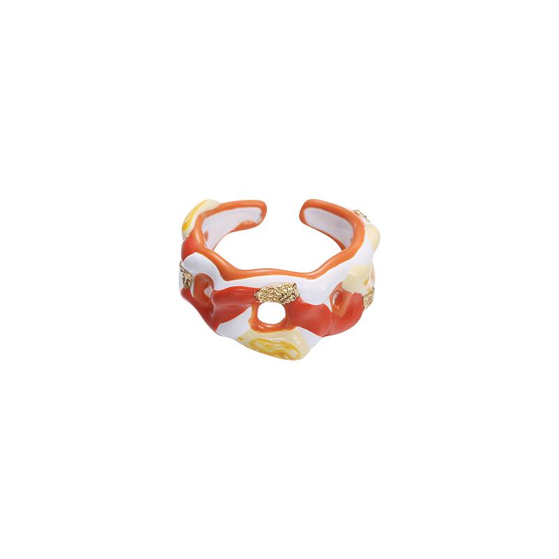 YOK Дофаминовый стиль Цветовой блок Жидкая форма Ручной работы Капельное масло Кольцо - Женские украшения Size 7