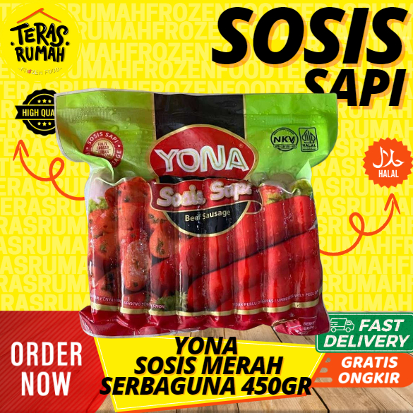 Yona Sosis Sapi MERAH Isi: 15 pcs Berat: 450gr Terbuat dari daging sapi pilihan. Rasanya enak & lebih terasa daging sapinya. cocok untuk olahan masakan seperti : sop, capcay, dan masakan lainnya.
