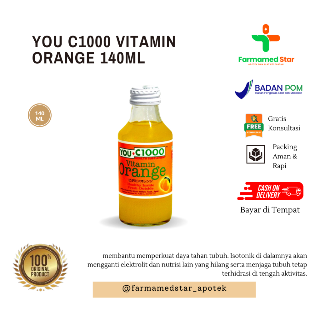 YOU-C 1000 ORANGE merupakan minuman rasa jeruk. Kandungan Vitamin C 1000 mg yang terdapat didalamnya membantu memelihara daya tahan tubuh.