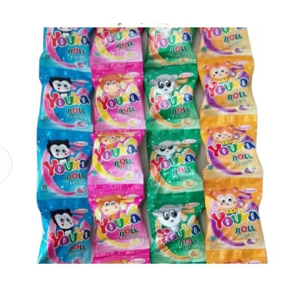 Youka Roll Candi adalah permen unik berbentuk roll pertama yanga ada di Indonesia.Memiliki berbagai varian rasa seperti Mangga ,jeruk,strobery dll
