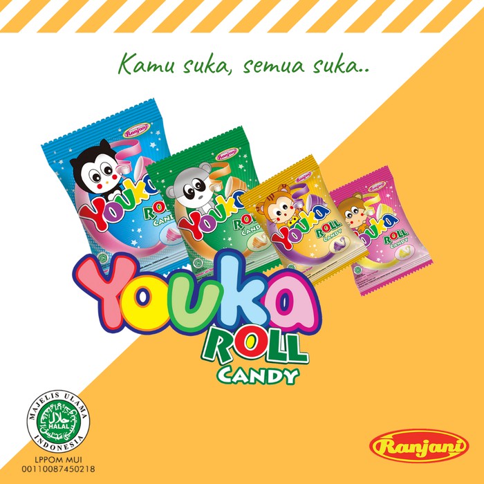 Youka roll Candy adalah permen unik berbentuk roll pertama di Indonesia yang memiliki beberapa Varian seperti Manga, Jeruk, Stroberi dan Anggur. Cara makan permen ini juga unik yaitu dengan cars di tarik permennya dan di roll