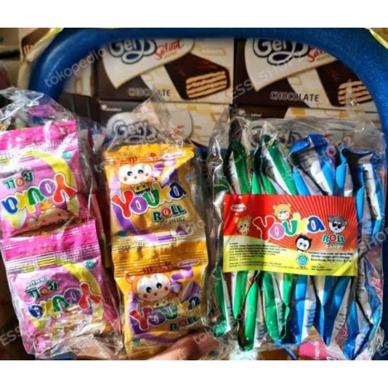 YOUKA ROLL 1 PSK ISI 20 PCS permen gulung aneka rasa...