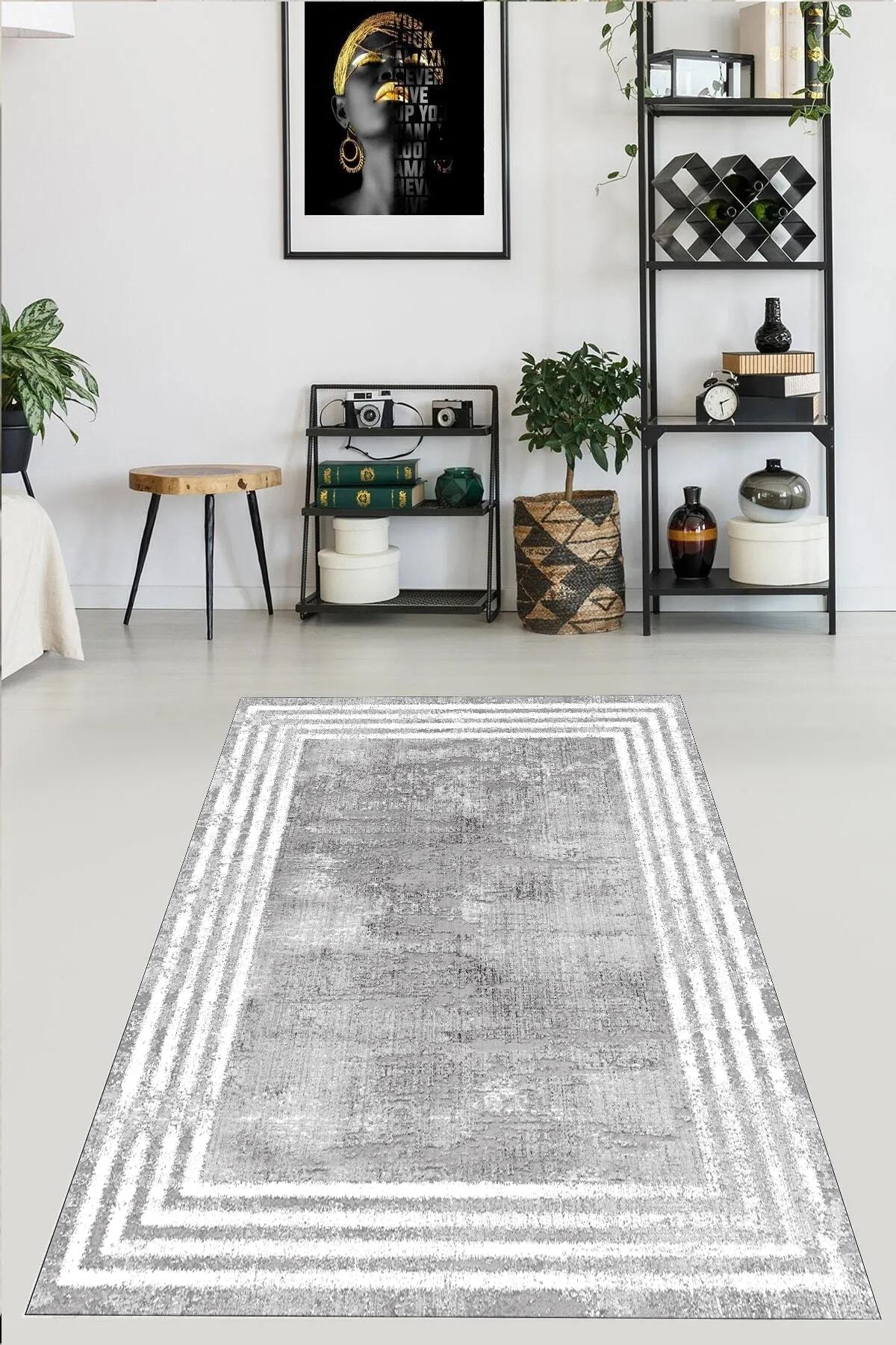 YTRHOME Home Modern E1005-5 Нескользящая точечная основа с цифровой печатью нового поколения для гостиной, кухни, прихожей, ковра и напольного коврика 50 x 80 серый/чёрный