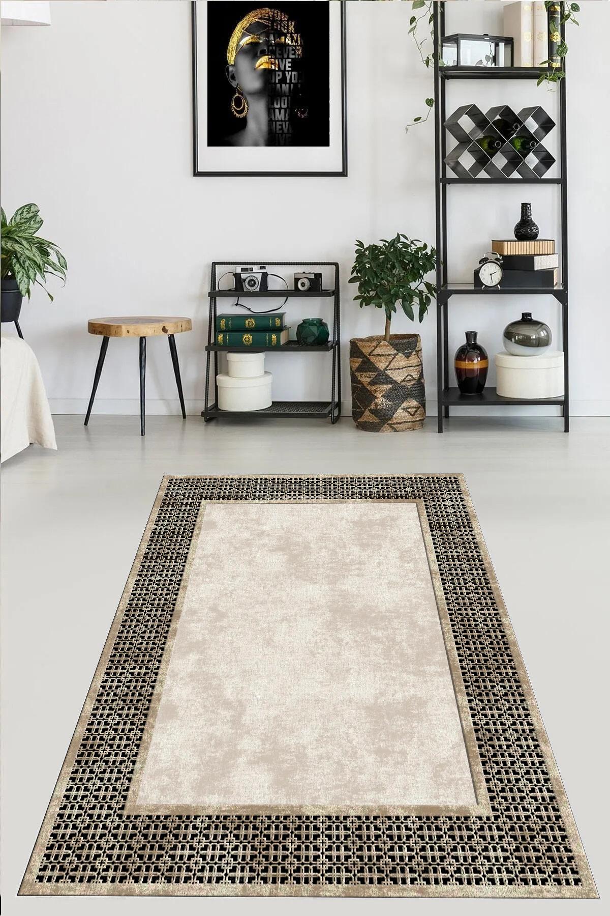 YTRHOME Home Modern E1045-1 Нескользящая точечная основа с цифровой печатью нового поколения для гостиной, кухни, прихожей, ковра и напольного коврика 50 x 80 серый/чёрный