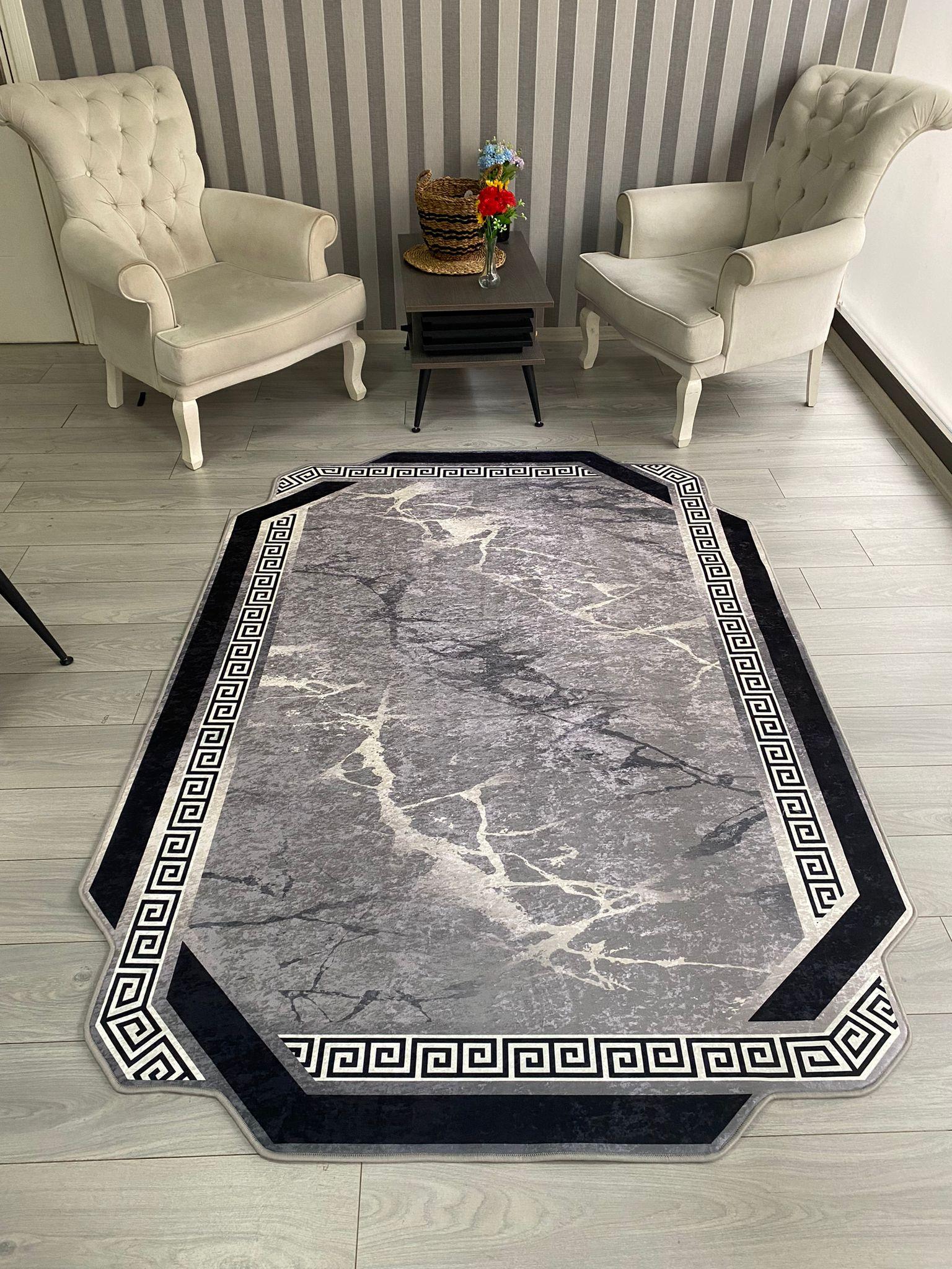 YTRHOME Home Modern M3077 Нескользящая точечная основа с цифровой печатью нового поколения, ковер для гостиной, кухни, прихожей и напольный коврик 50 x 80 серый/чёрный