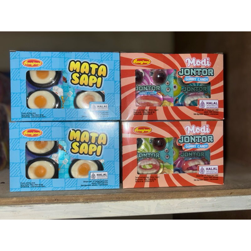 permen Yupi yang kenyal merk modi dengan 2 pilihan jenis yaitu mata sapi dan jontor