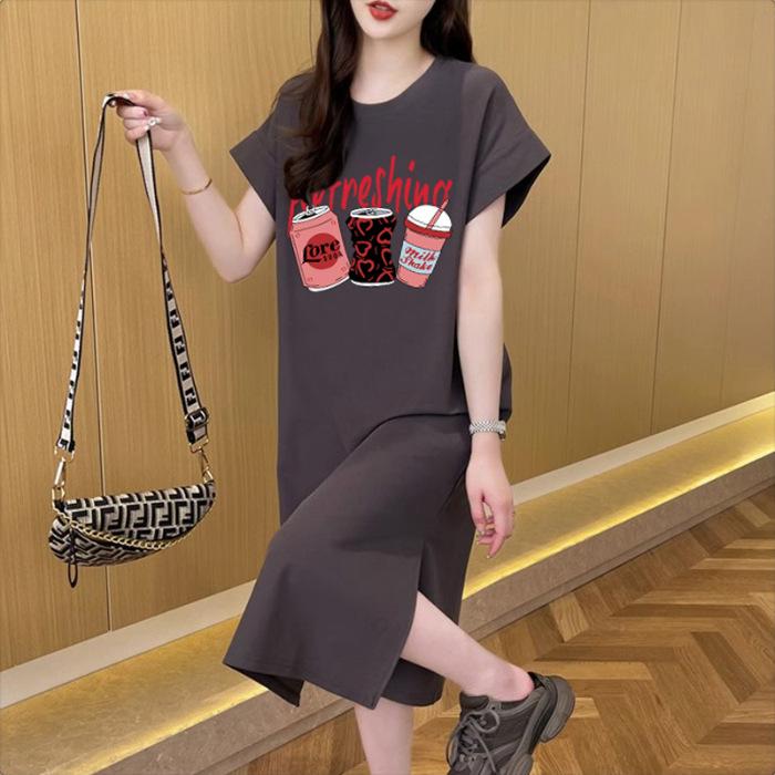 YYFS Женская мода Лето Весна Короткий рукав Круглый вырез Свободная линия талии Повседневные платья M темно-серого