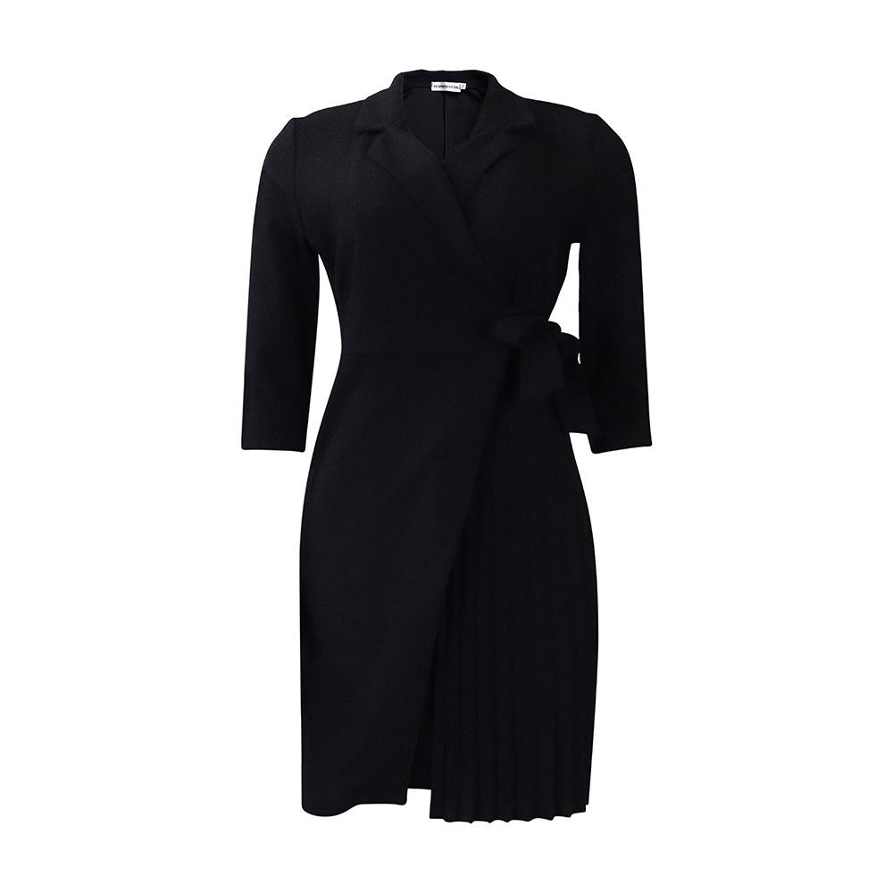 YYFS Женская мода Лето Весна Однотонный принт Рукава 3/4 Воротник ПОЛО Завышенная талия Повседневные платья M чёрный