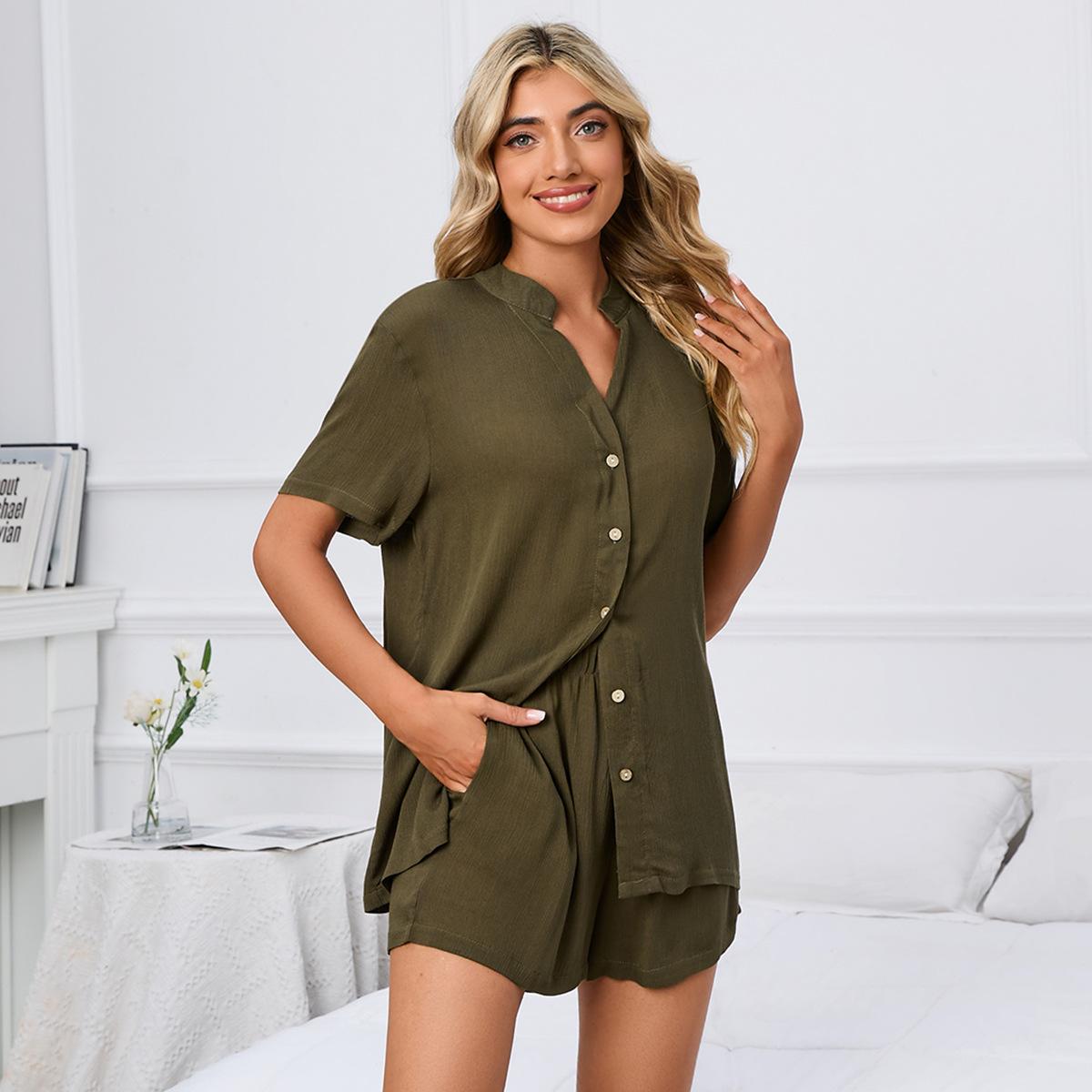 YYFS Женская мода Повседневный Лето Весна Однотонный Принт Короткий Рукав V-образный Вырез Брюки Костюмы XXXXXL армия зеленый