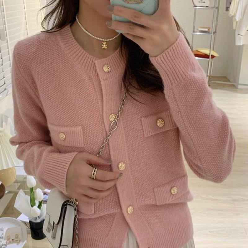 YYFS Женская мода Повседневный Осень Зима Однотонный Принт Длинный Рукав О-Образным Вырезом Свитера Size: One Size розовый