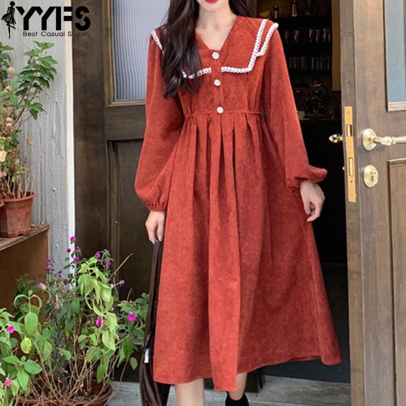 YYFS Женская мода весна-осень однотонный принт длинный рукав V-образный вырез высокая талия повседневные платья M чёрный