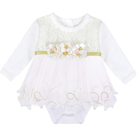 Taffy Baby Girl Newborn Gold Glitter Floral Short Sleeve Unique Tutu Bodysuit (0-3 Months Long Sleeve)