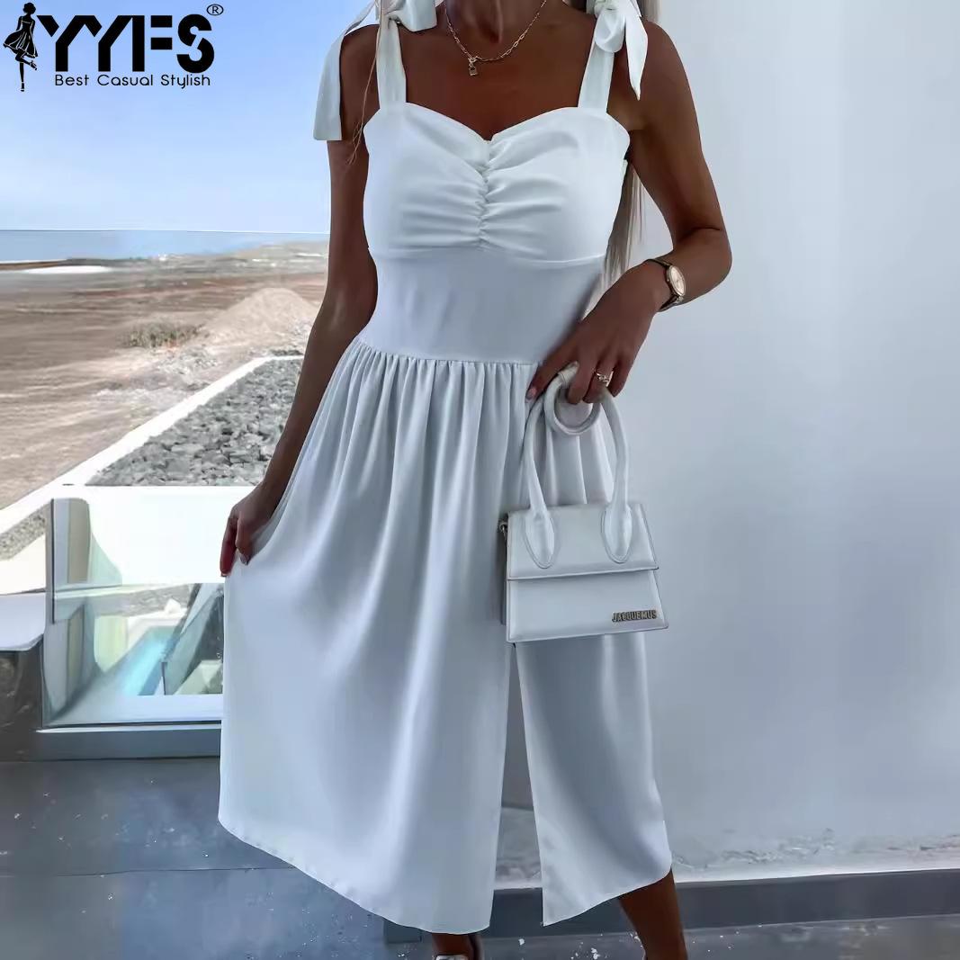 YYFS женские модные летние весенние однотонные повседневные платья без рукавов с высокой талией и принтом S белый