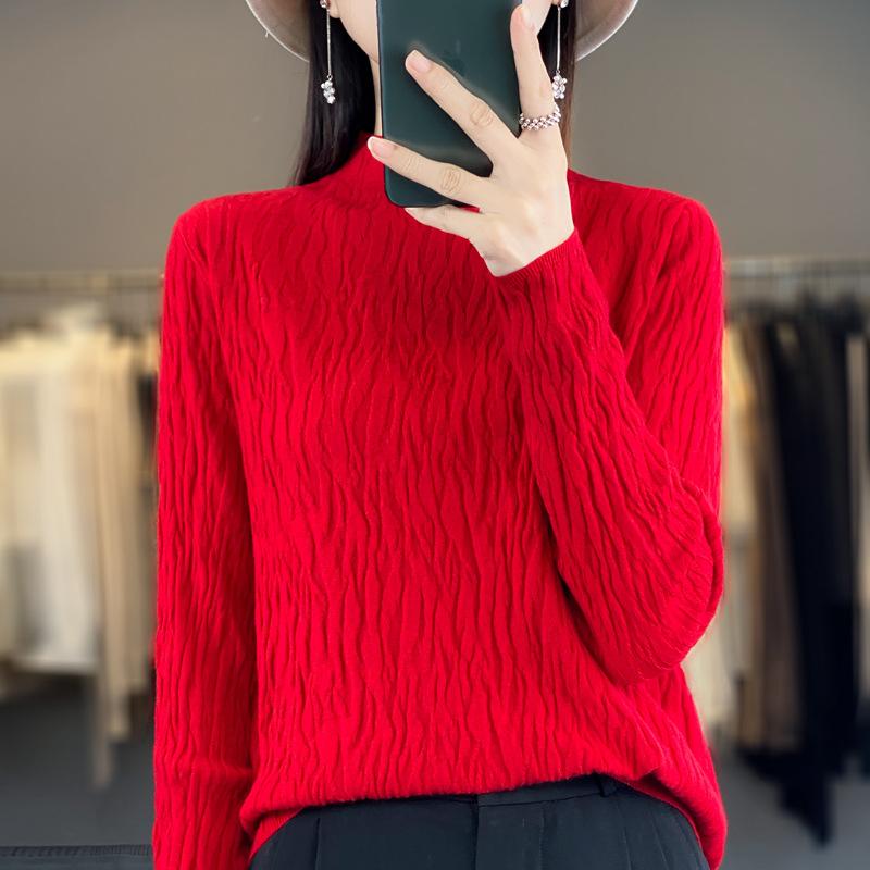 YYFS женские модные повседневные однотонные принты осень-зима с длинным рукавом полуводолазка тонкие свитера XXL красный