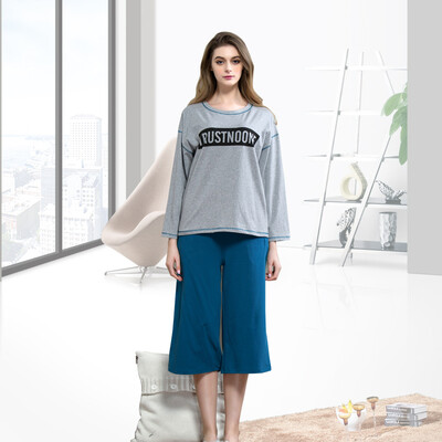 Yalu пижамы женщины весной и осенью хлопок с длинными рукавами брюки нижнее белье костюм печатные письма домашний костюм для одежды Ма серый l