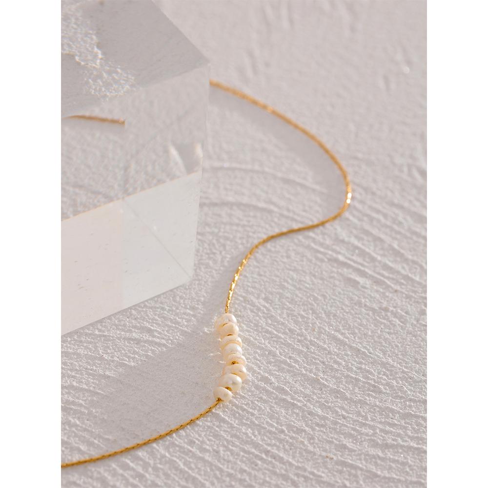 Yhpup Tarnish Free Натуральные жемчужные бусины Шикарное изысканное ожерелье Тонкая цепочка Нержавеющая сталь Минималистский шарм Воротник Украшения для женщин