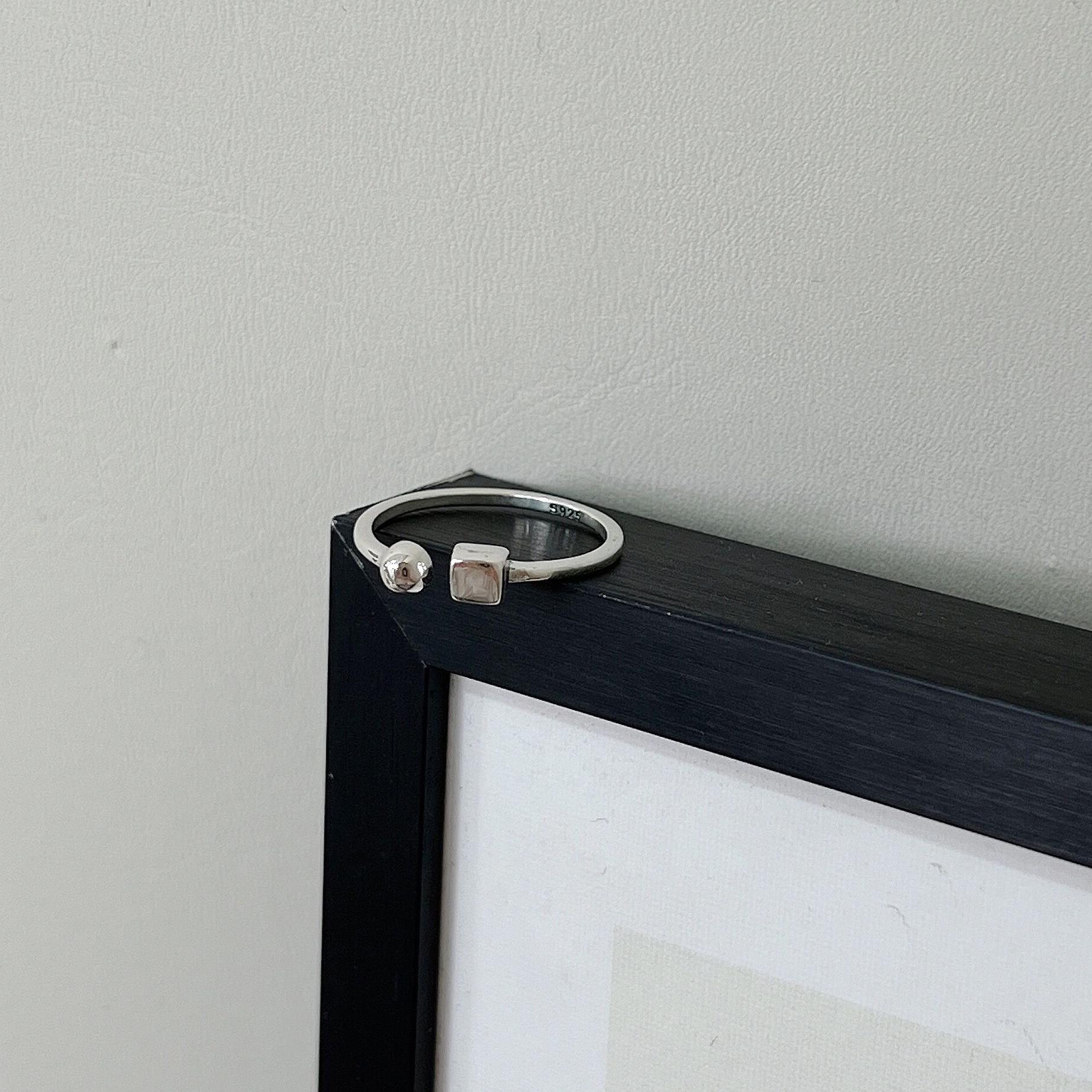 Yinruitai S925 Серебряное Квадратное и Круглое Открытое Кольцо на Палец - Женский Простой, Холодный Стиль Модный Аксессуар. Adjustable open