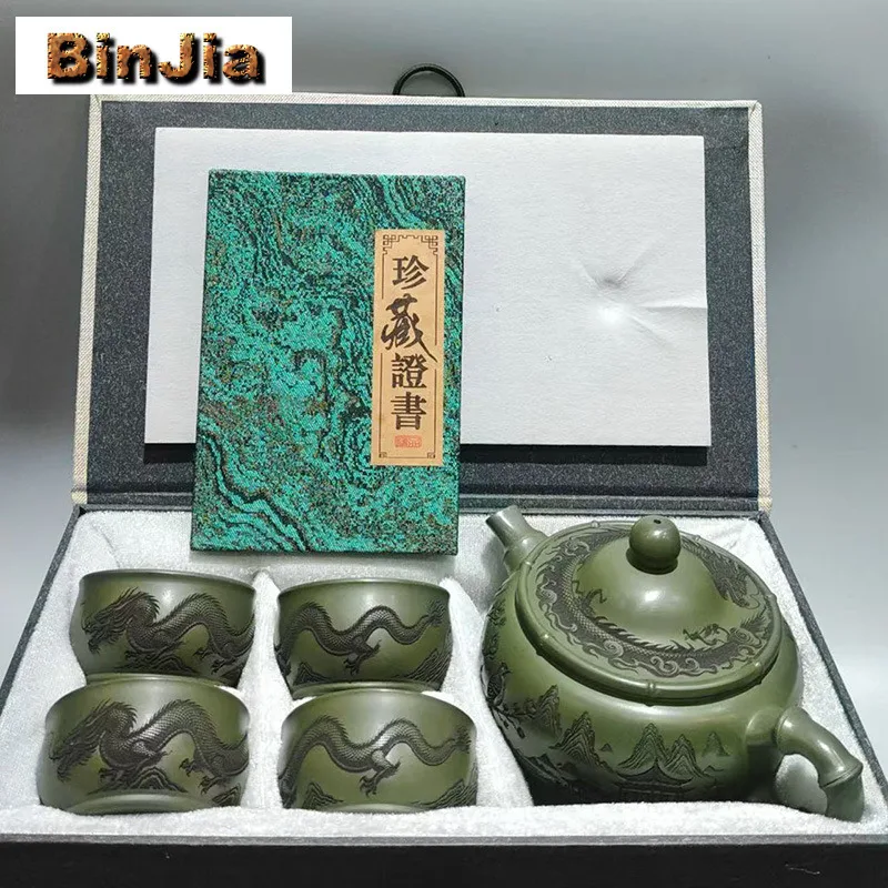 Yixing Zisha бамбуковый чайный сервиз ручной работы с зеленым драконом, полный набор, антикварный набор для чайной церемонии, чайник и чайная чашка, набор для чайного ремесла