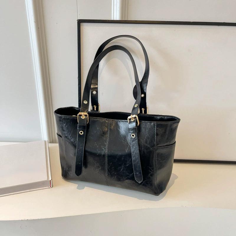 Yogodlns Модные Ретро Женские Сумки на Плечо из ПУ Кожи Тренд Женская Сумка-Подмышка Большой Вместимости Женская Сумка для Поездок на Работу 32x11x19cm чёрный