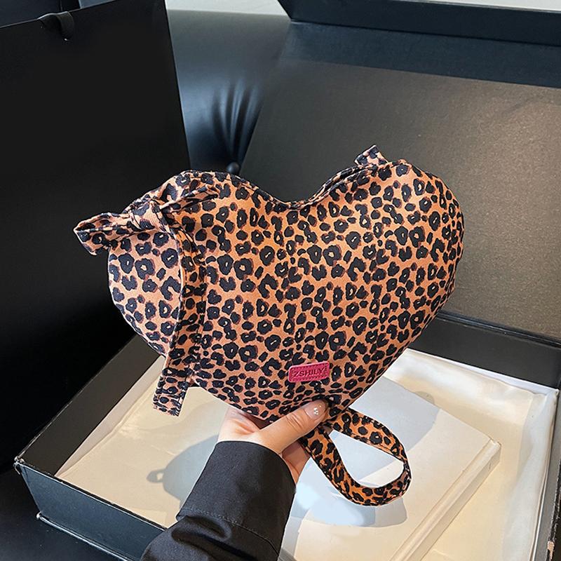 Yogodlns Новая сумка через плечо в форме сердца, модная сумка через плечо с леопардовым принтом, симпатичная сумка-кошелек для женской сумки-тоут 27x5x19cm
