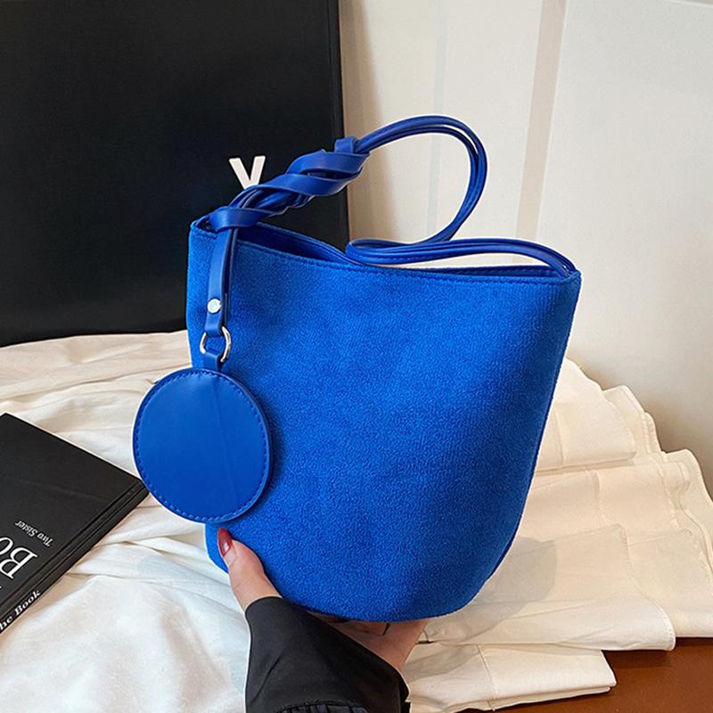 Yogodlns Однотонные женские замшевые сумки-ведра через плечо, большая вместимость, универсальные женские сумки-тоут под мышкой, повседневные женские сумки для телефона, кошелек 22x17x19cm синий