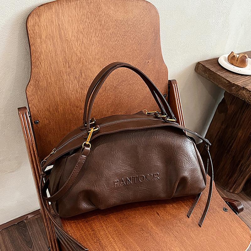 Yogodlns Осенне-зимняя женская сумка большой вместимости, сумка-боулинг, повседневная наплечная сумка, винтажная сумка из коричневой кожи 36x11x18cm