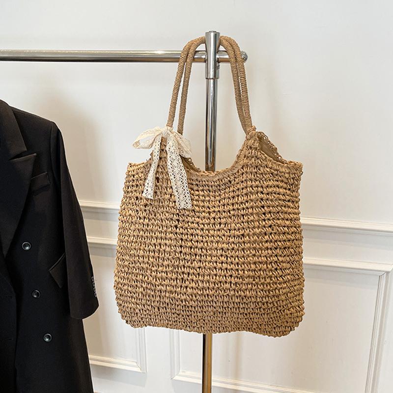 Yogodlns Плетеная пляжная сумка, винтажная плетеная сумка ручной работы, сумки из ротанга и рафии, бохо, женская летняя сумка для путешествий и отпуска, повседневная сумка-тоут style 2 хаки