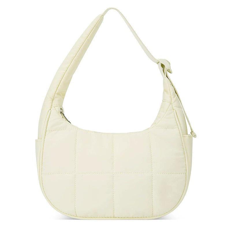 Yogodlns Пуховая сумка-полумесяц для женщин Стеганая сумка через плечо Регулируемый ремешок Сумка через плечо Нейлоновая Рабочая Дорожная Сумка-хобо 25x10x15cm бежевый