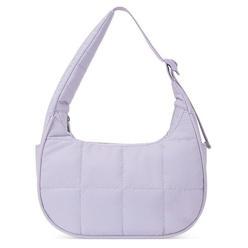Yogodlns Пуховая сумка-полумесяц для женщин Стеганая сумка через плечо Регулируемый ремешок Сумка через плечо Нейлоновая Рабочая Дорожная Сумка-хобо 25x10x15cm фиолетовый