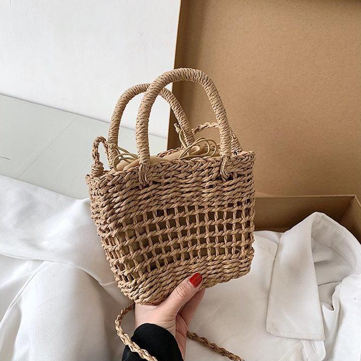 Yogodlns, женские маленькие сумки из ротанга, сумка через плечо, богемная летняя пляжная соломенная сумка с лентой, женская модная сумка-мессенджер на плечо 14x8x15cm хаки