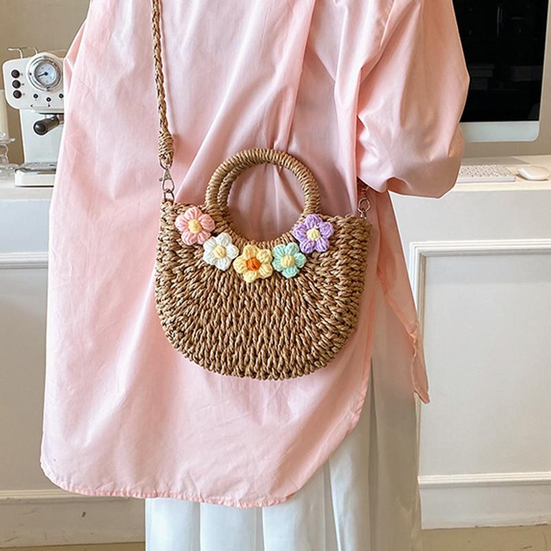 Yogodlns летняя тканая сумка женская новая большая вместительная сумка через плечо с милым цветком сумка через плечо соломенная сумка-ведро 17*7*20cm хаки