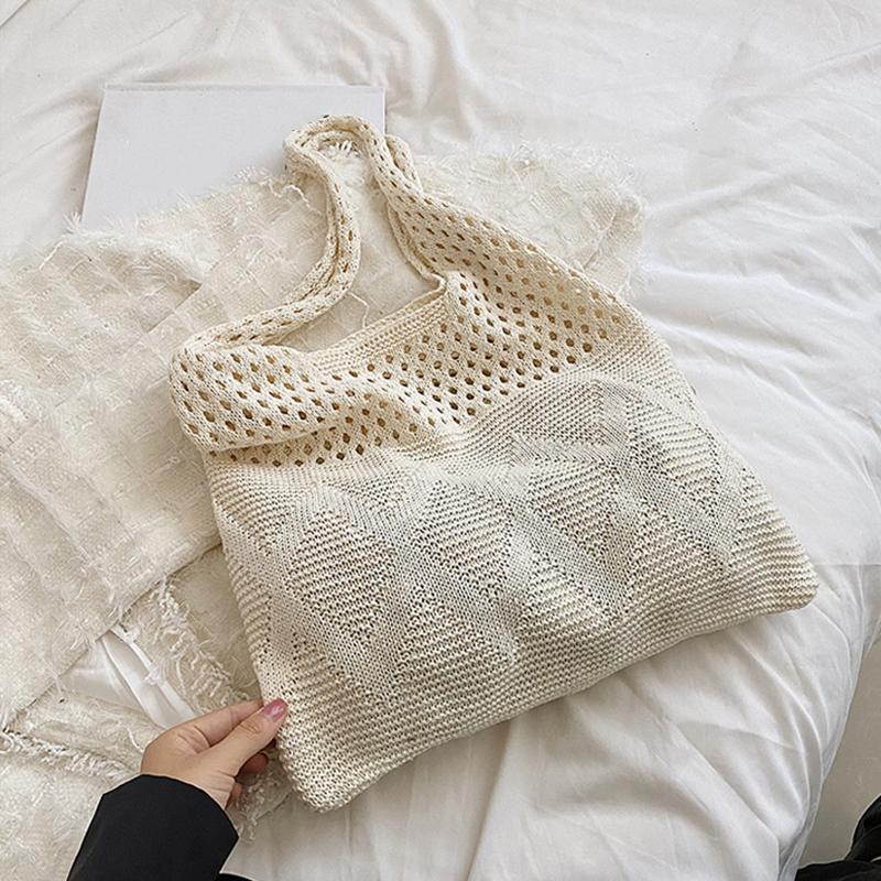 Yogodlns шерстяная вязаная сумка-тоут для женщин винтажная хлопковая сумка на плечо для девочек большая вместительная женская сумка вязаная крючком сумка 35x35cm бежевый