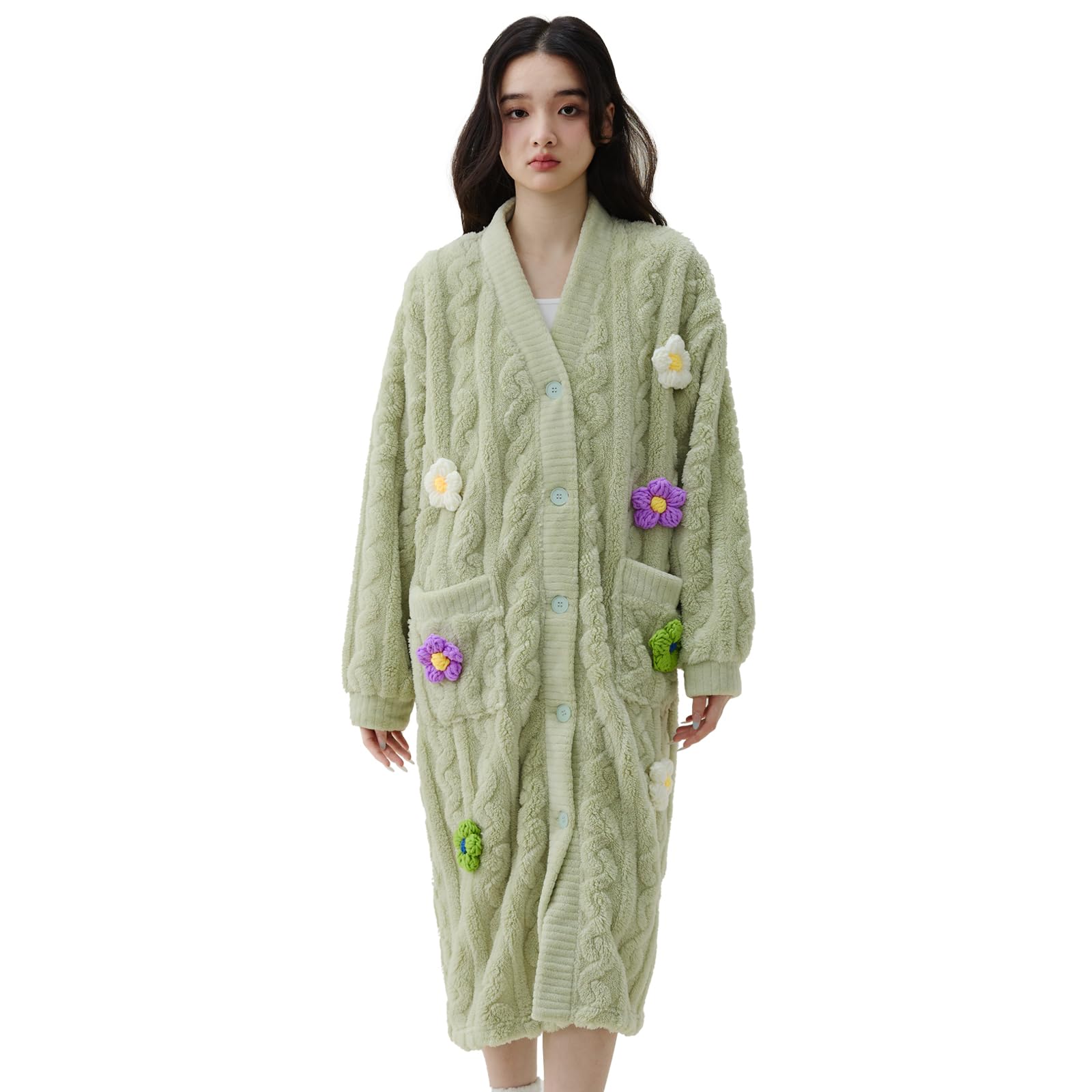 Yogwoo Пушистые Милые и Большие Размеры Зимние Длинные Однотонные Размер M Женская Пижама, Домашняя Одежда на Флисовой Подкладке, Теплая, В Наличии, Домашняя Одежда, С Открытой Передней Частью, Рукава,