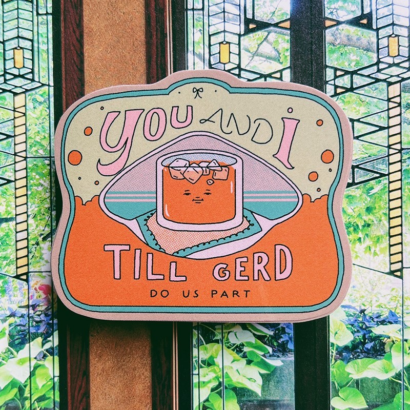 Stiker bergambar minuman favorit yang mengganggu asam lambung itu.